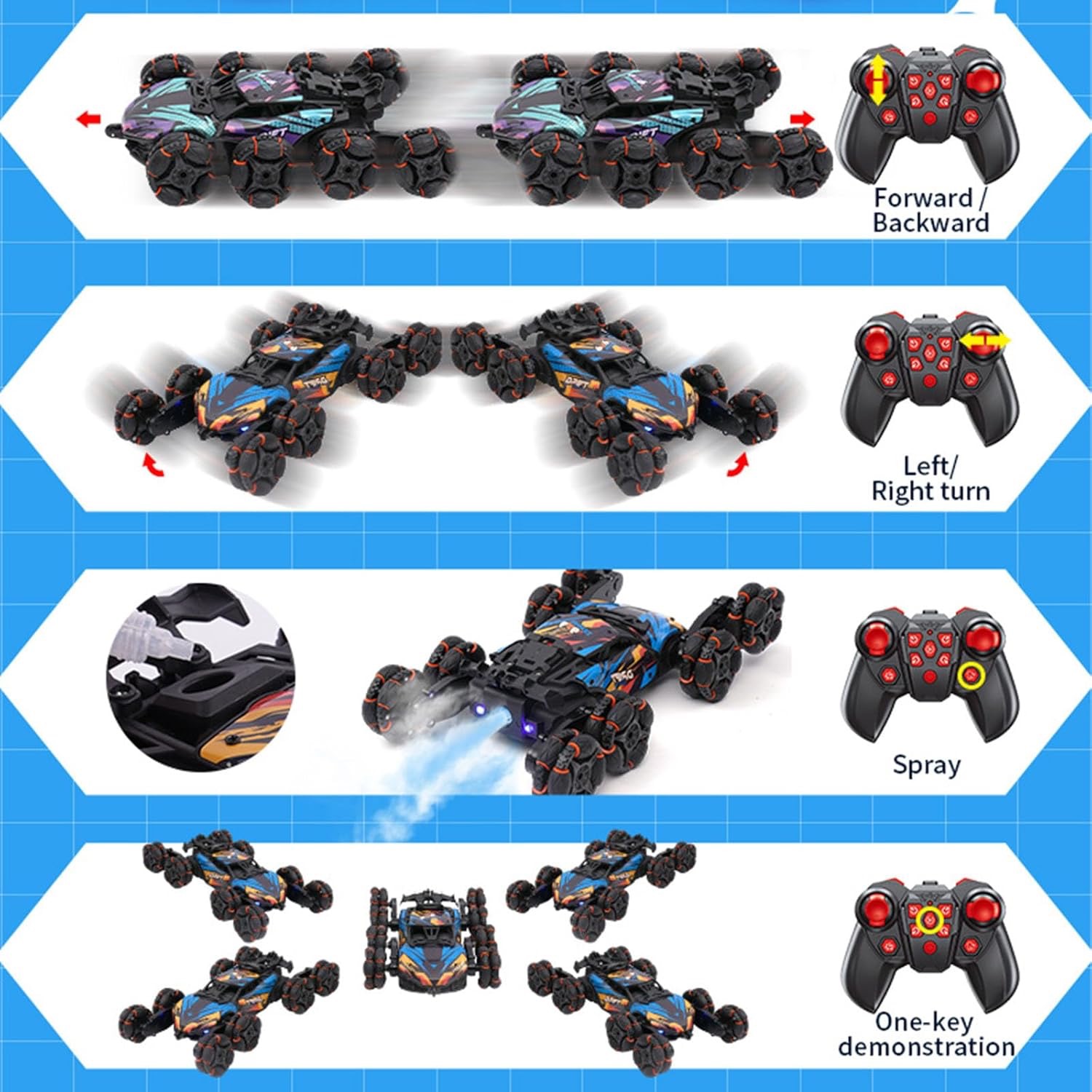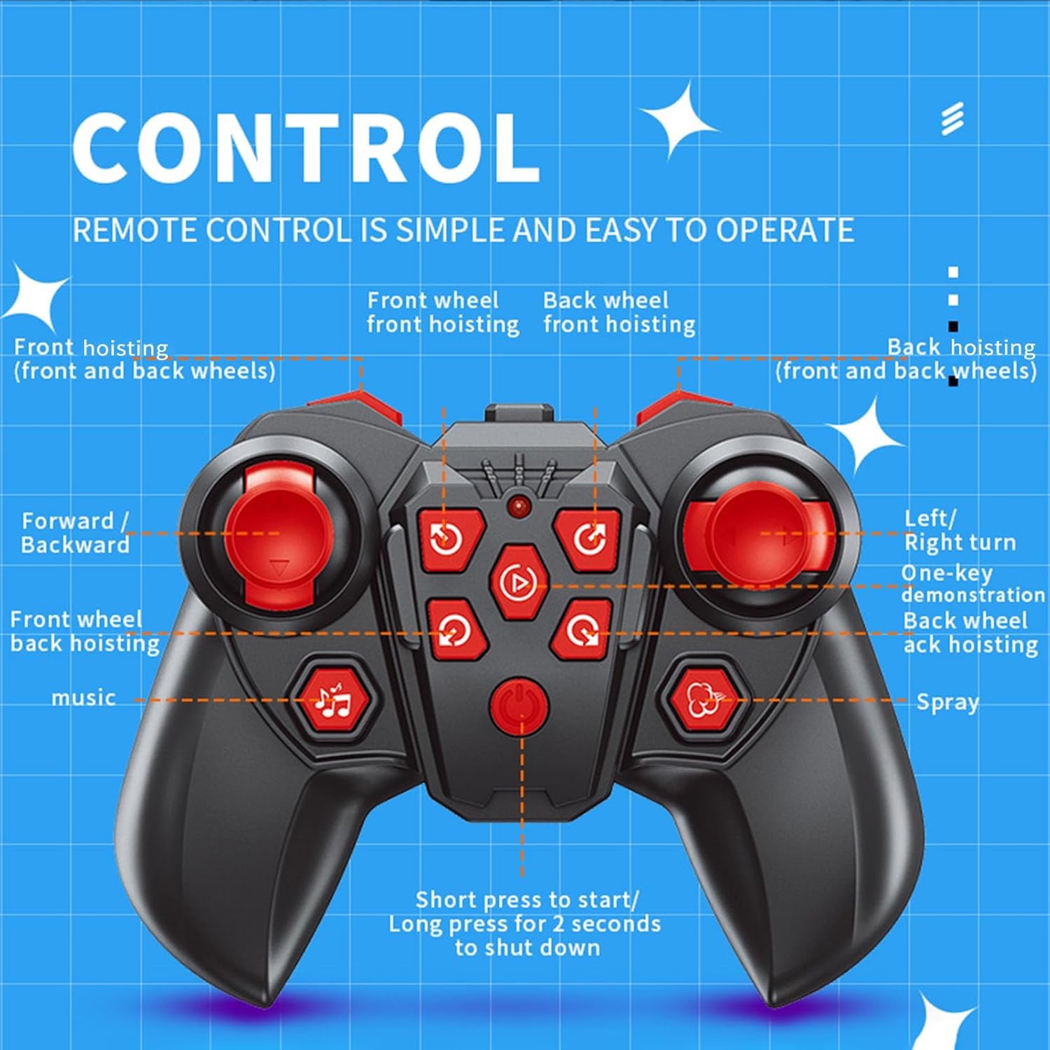Ciesz się precyzyjną jazdą na pilota z płynnym ruchem we wszystkich kierunkach lub włącz tryb demonstracyjny jednym przyciskiem, aby oglądać automatyczny pokaz akrobacji z obrotami, światłami i efektem mgły. Wbudowane efekty natychmiast tworzą atmosferę ekscytacji, bez potrzeby posiadania doświadczenia w prowadzeniu.