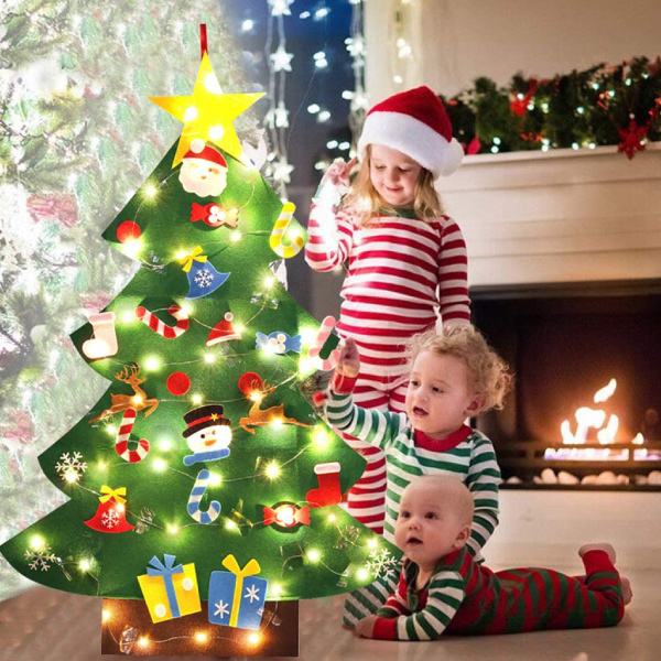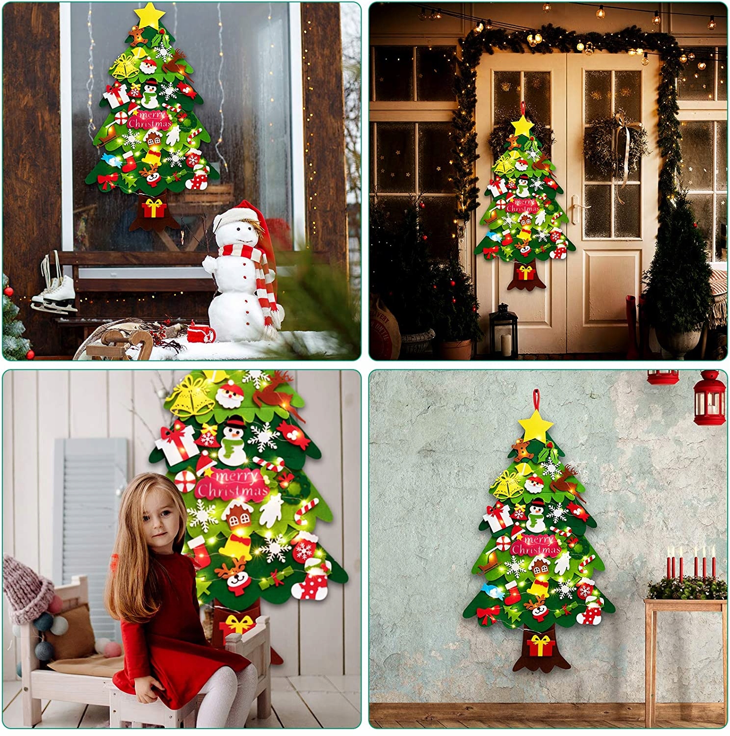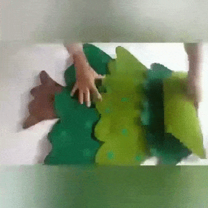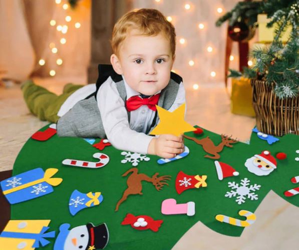 Dzieci mogą dowolnie układać choinkę, ponieważ ozdoby mocują się do choinki za pomocą rzepów. Po świętach można ją złożyć i użyć ponownie w przyszłym roku! Świetnie, prawda?