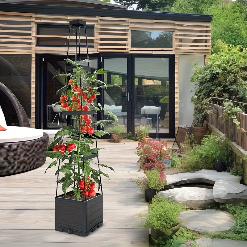 Idealna dla szerokiej gamy roślin, takich jak pomidory, ogórki, fasola, róże i bluszcz. Zintegrowana kratka wspinaczkowa zapewnia solidne pionowe podparcie, pomagając roślinom rosnąć w górę i maksymalnie wykorzystać przestrzeń w ogrodzie, na balkonie lub w pomieszczeniach.