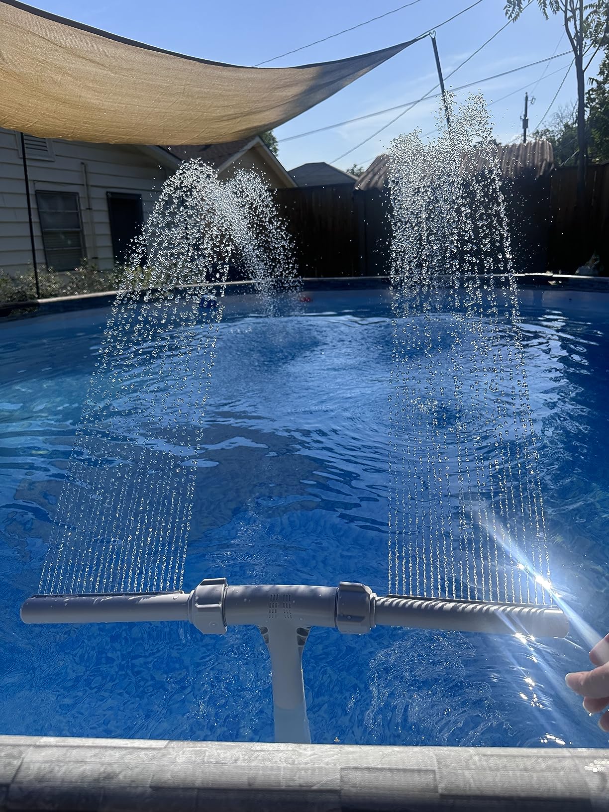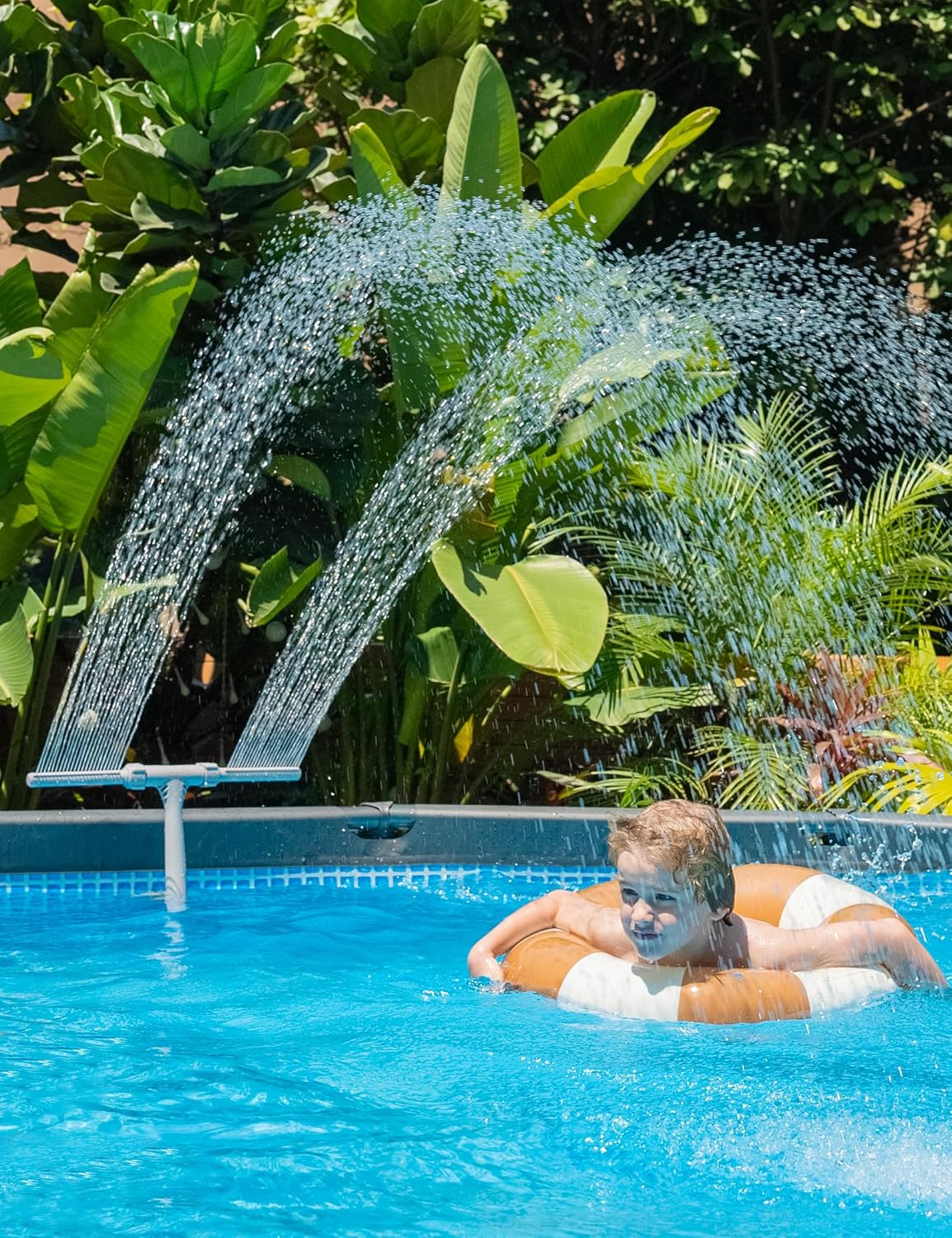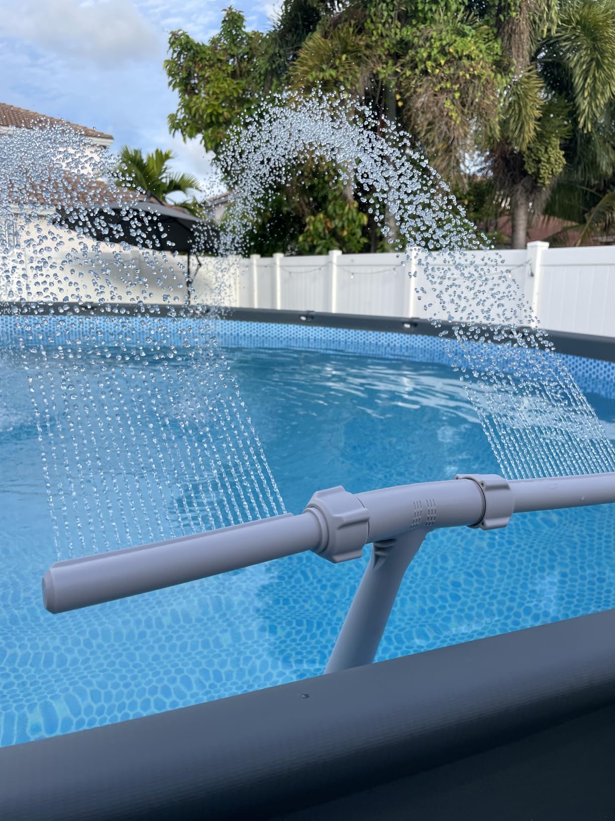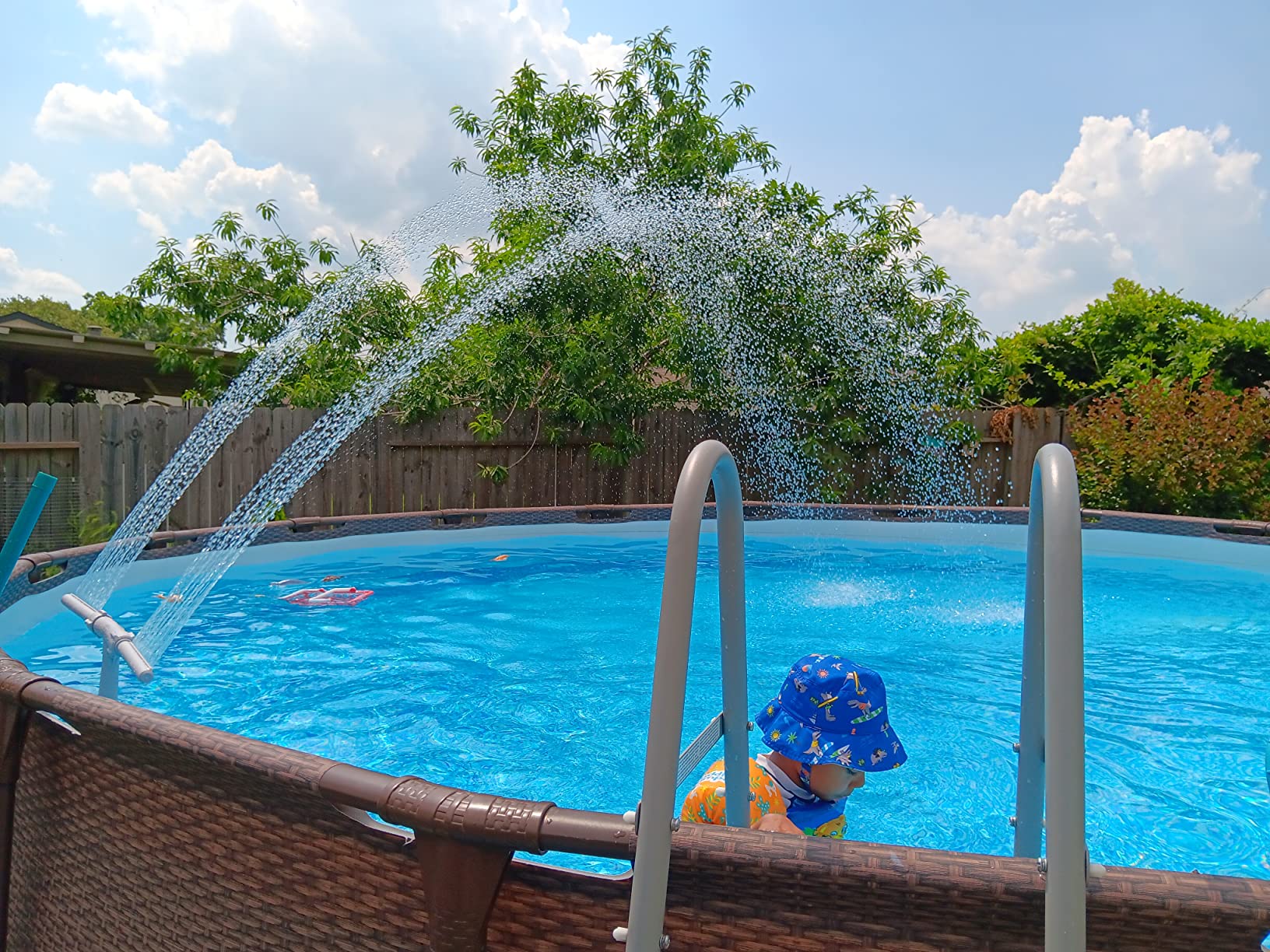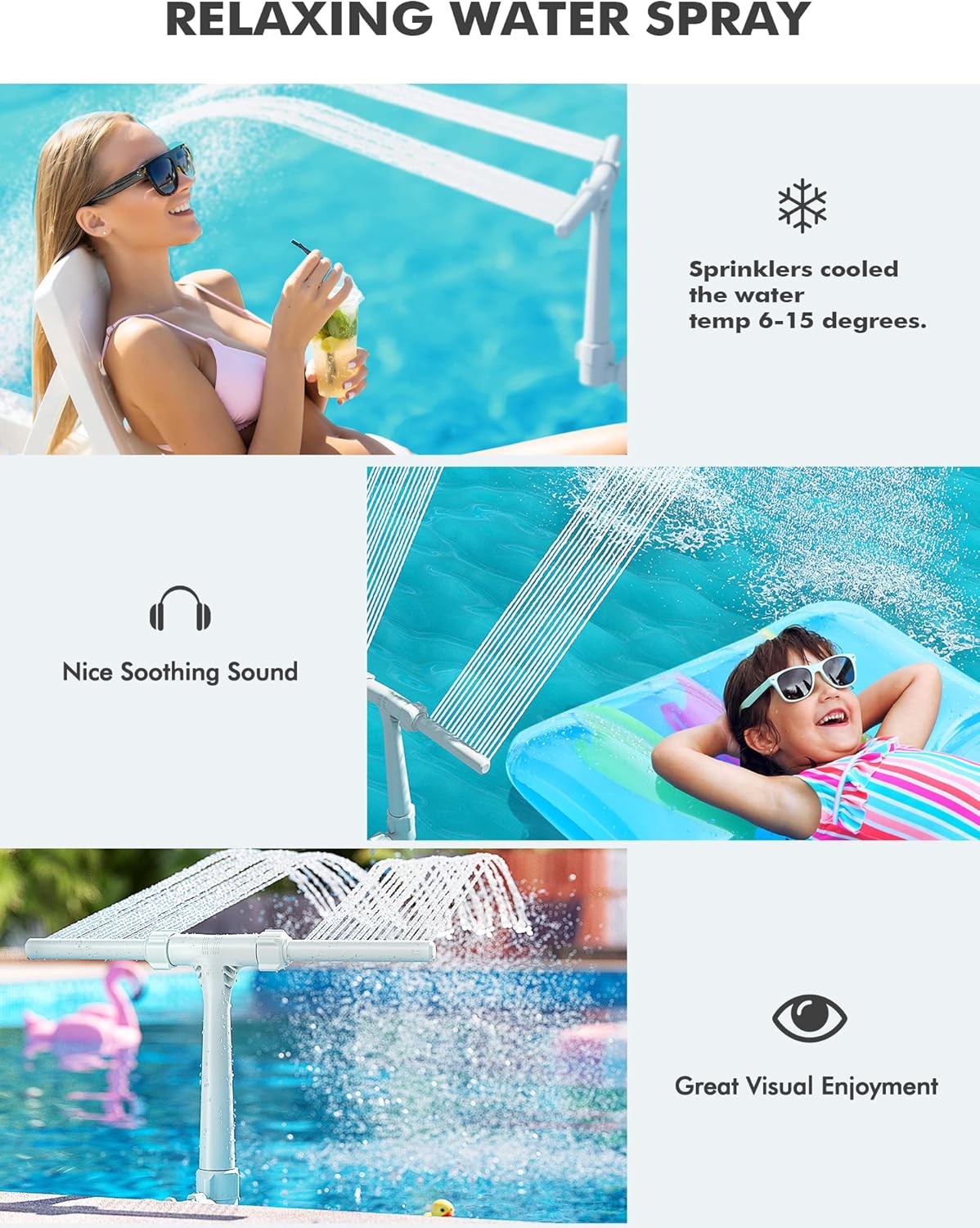 Ulepszony system z dwoma strumieniami wody umożliwia szersze i silniejsze rozpryskiwanie niż zwykłe fontanny, co oznacza więcej zabawy i lepszy efekt chłodzenia. Nawet podczas upałów woda w basenie może się ochłodzić o 6–10 °C, co znacznie poprawia komfort kąpieli. Ponadto tworzy kojący dźwięk płynącej wody, który zapewnia relaksującą atmosferę o każdej porze dnia.
