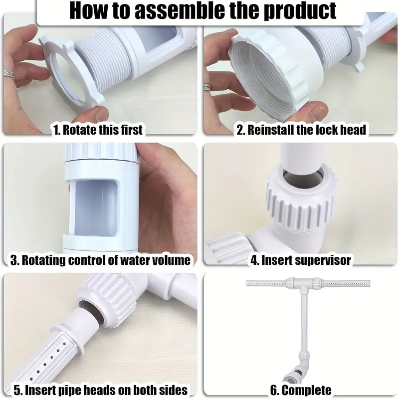 Dzięki obrotowej rurze możesz kierować strumień wody – równolegle lub krzyżowo – w zależności od swoich preferencji. Regulacja ciśnienia wody umożliwia pełną kontrolę nad wysokością i siłą fontanny. Mniejszy otwór oznacza wyższy strumień, dlatego możesz łatwo dostosować efekt do wielkości basenu i wydajności pompy.