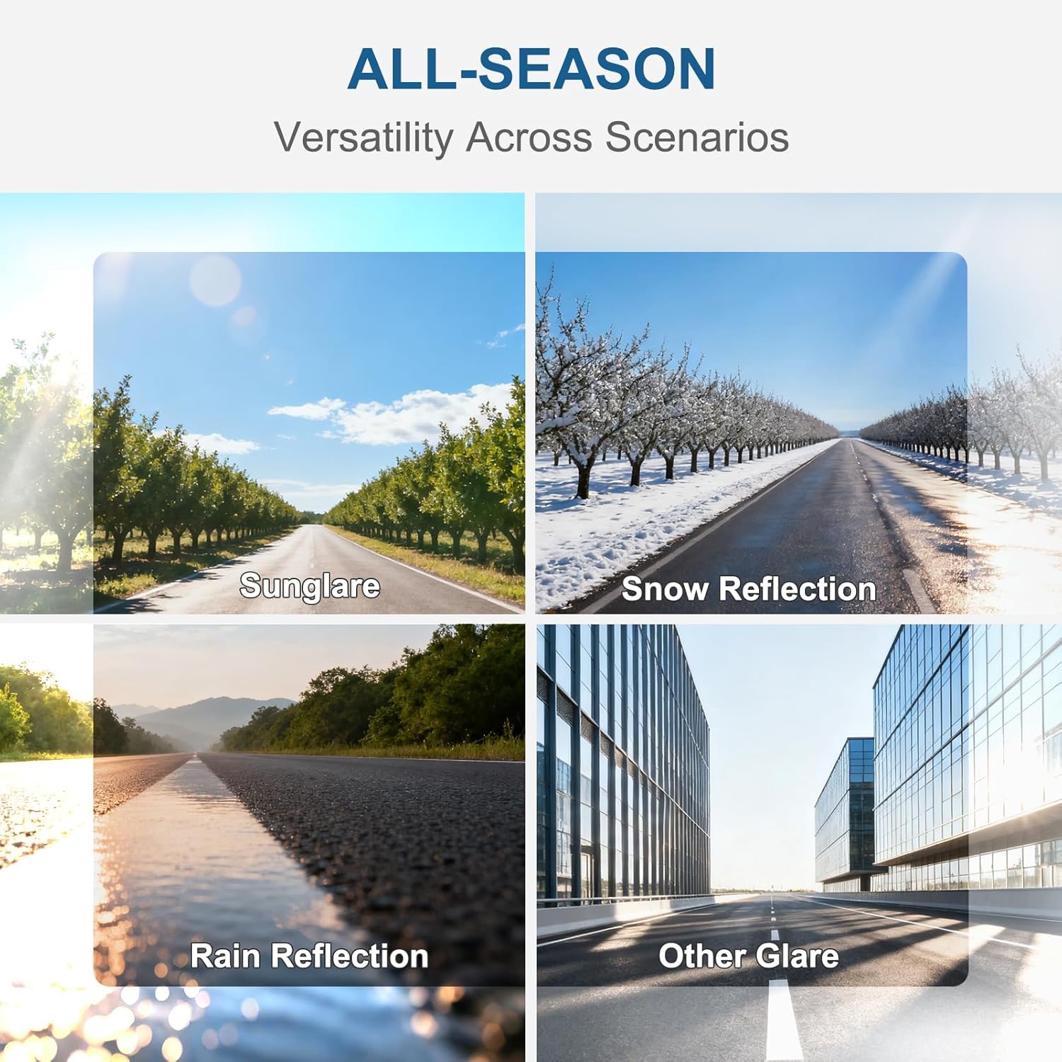 Polaryzacyjna soczewka filtruje ostre światło słoneczne, odbicia i promienie UV od powierzchni samochodu lub budynków. Zmniejsza zmęczenie oczu i pomaga zachować wyraźne widzenie nawet w pełnym słońcu.