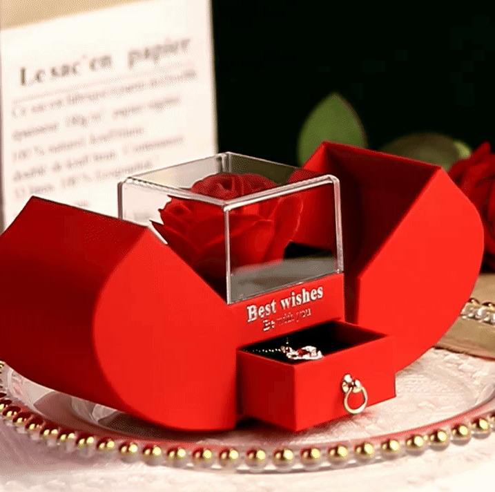 Pudełko posiada wysuwaną szufladkę, idealną do przechowywania biżuterii, takiej jak naszyjnik, pierścionek lub bransoletka. To sprytne rozwiązanie dodaje prezentowi dodatkową warstwę zaskoczenia i potęguje emocje w chwili jego otwarcia 🎁