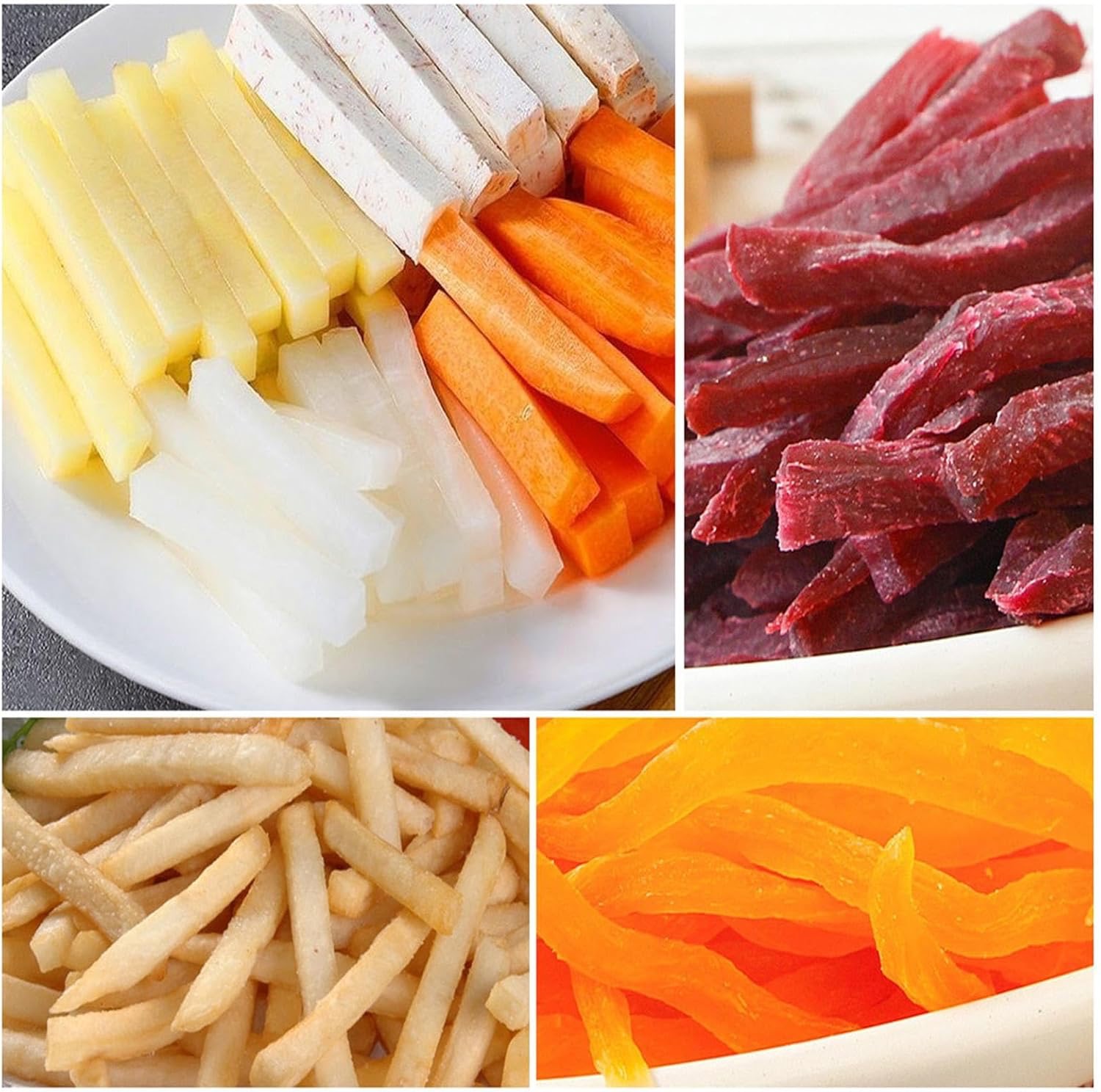 Niezależnie od tego, czy kroisz kapustę, cebulę, ogórki czy marchewkę, krajalnica bez problemu radzi sobie z wieloma rodzajami warzyw. Umożliwia szybkie przygotowanie frytek, sałatek, dań stir-fry i innych domowych potraw.