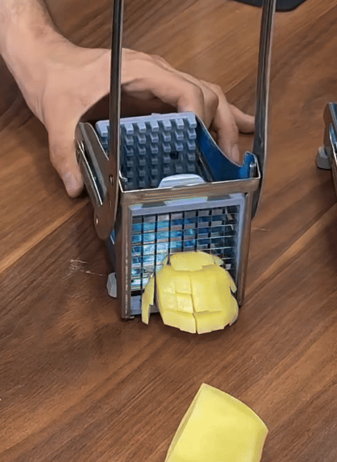 Wykonana z wysokiej jakości stali nierdzewnej przeznaczonej do kontaktu z żywnością, krajalnica jest odporna na rdzę i ścieranie oraz zaprojektowana na długie lata użytkowania. Z łatwością kroi ziemniaki na równe plastry, dzięki czemu szybciej i precyzyjniej przygotujesz składniki.