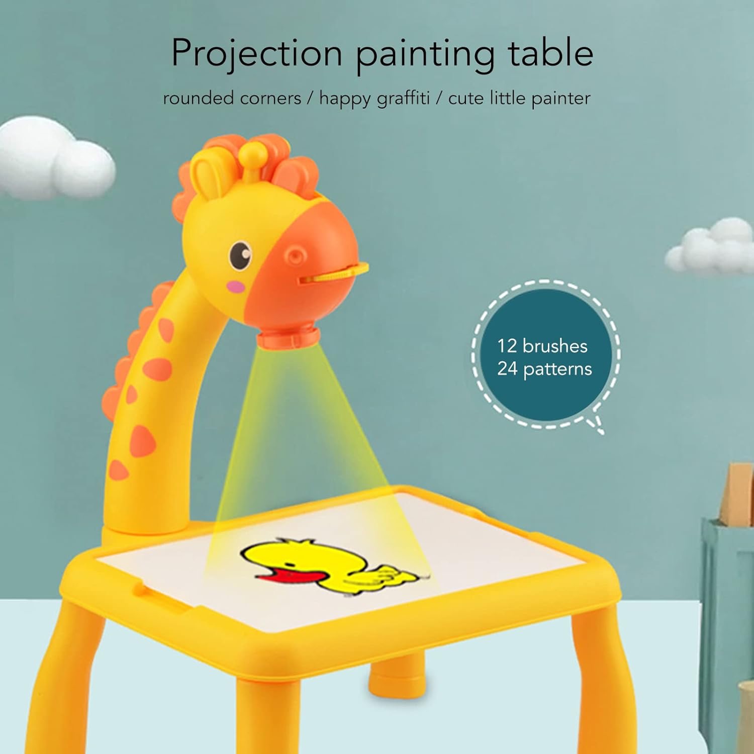 Dzięki wyjmowanym narożnym wspornikom i wielu wzorom projekcji projektor wspiera koordynację ręka-oko, kreatywność oraz rozwój małej motoryki. Zaokrąglone krawędzie z ABS zapewniają bezpieczną zabawę, podczas gdy dzieci godzinami oddają się artystycznym eksperymentom.