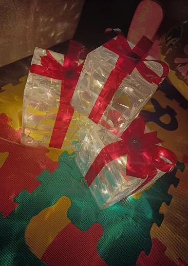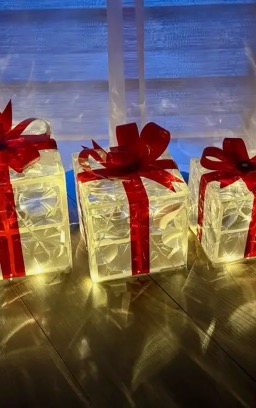 Zestaw trzech pudełek (małe, średnie i duże) podłącza się do jednego gniazdka i posiada certyfikat UL, co pozwala na łatwy i bezpieczny montaż w dowolnym miejscu. Idealne do dekoracji zarówno wewnątrz, jak i na zewnątrz, zapewniają ciepłą, świąteczną atmosferę w domu lub ogrodzie.