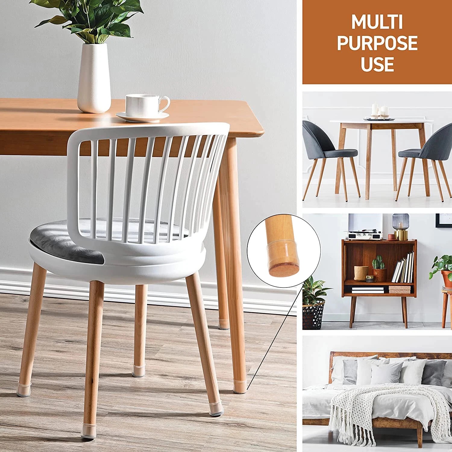 Wykonane z wysokiej jakości silikonu z solidnie przymocowanym filcem, te osłonki są odporne na wodę, trwałe i łatwe do utrzymania w czystości. Mocny materiał zapewnia stabilność, a jednocześnie umożliwia płynne przesuwanie krzeseł bez śladów.