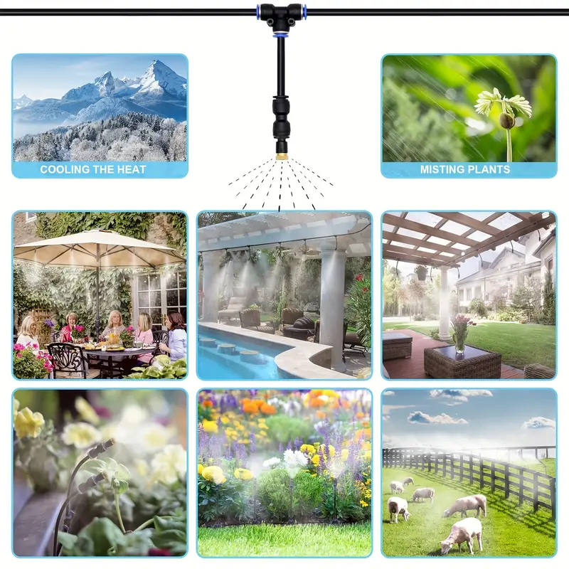 Podłącz go bezpośrednio do swojego systemu wodociągowego do chłodzenia i nawadniania bez energii elektrycznej. Idealny do ogrodów, tarasów, szklarni, basenów, trampolin, parasoli, rabat kwiatowych i nie tylko!