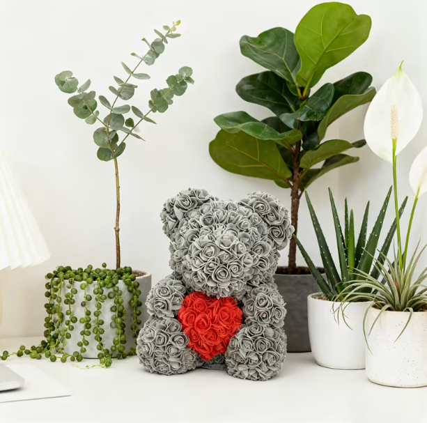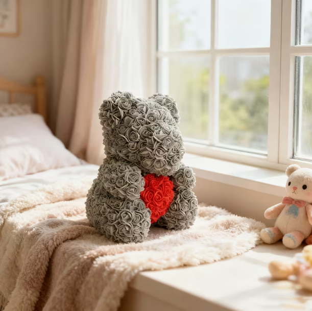 Ten rose teddy bear już przy pierwszym spojrzeniu robi ogromne wrażenie i pokazuje wyjątkową uwagę, jaką darzysz osobę obdarowywaną ✨. Jest zapakowany w przezroczystą dekoracyjną folię, która podkreśla jego elegancję i sprawia, że jest gotowy do wręczenia bez dodatkowego pakowania.