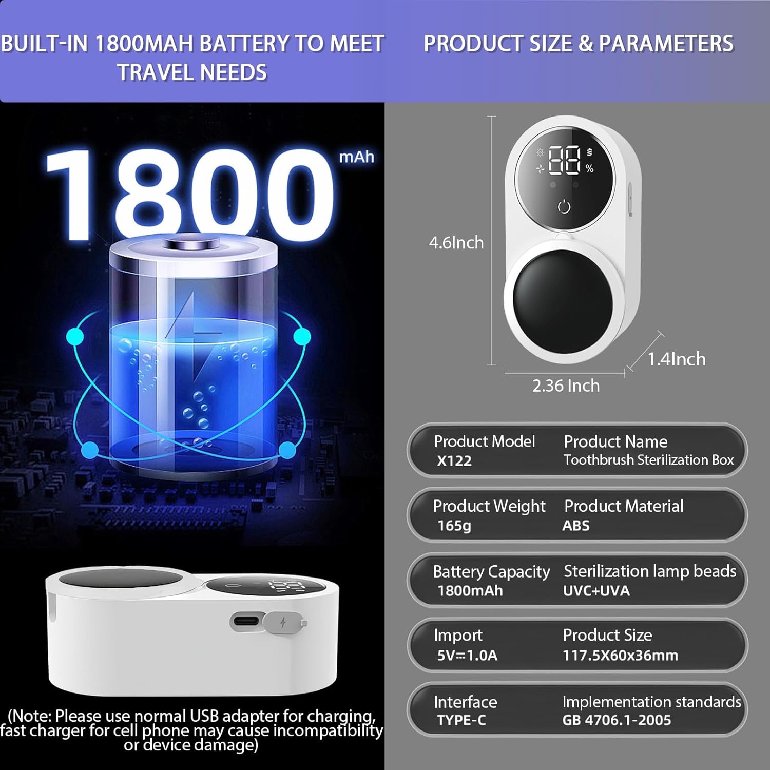 Urządzenie posiada dwie oddzielne komory czyszczące, aby zapobiec kontaktowi między szczoteczkami do zębów. Dzięki temu idealnie sprawdza się we wspólnych łazienkach, umożliwiając przechowywanie szczoteczek dorosłych i dzieci razem, z większym poczuciem bezpieczeństwa – zarówno w domu, jak i w podróży.