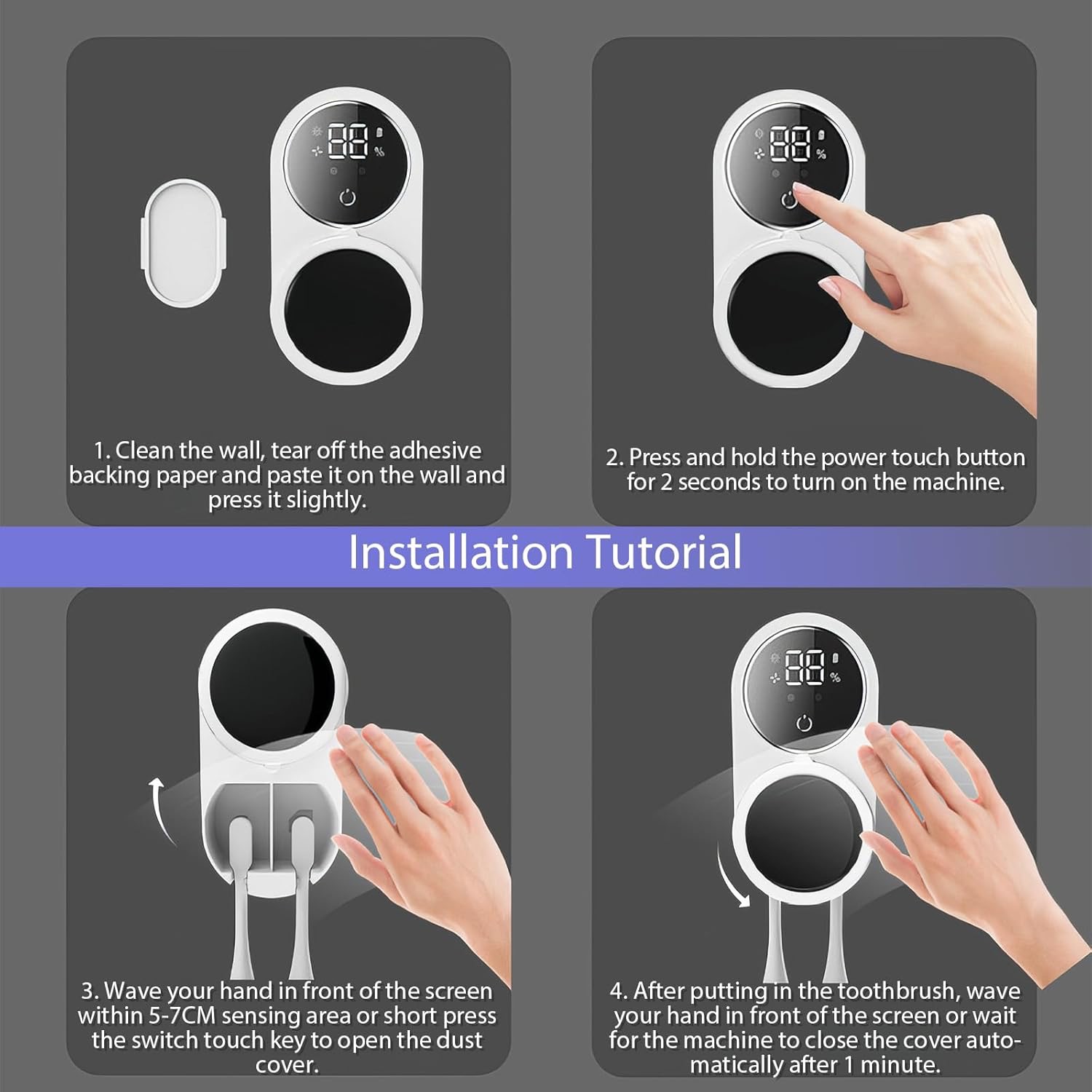 Wyposażone w wydajną baterię o pojemności 1800 mAh, to urządzenie do sanizacji szczoteczek do zębów zapewnia długotrwałą pracę i wygodne szybkie ładowanie Type-C USB. Ścienna konstrukcja z mocną samoprzylepną taśmą umożliwia prosty montaż bez wiercenia, stabilnie utrzymuje się na miejscu i łatwo ją zdjąć do ładowania lub czyszczenia.