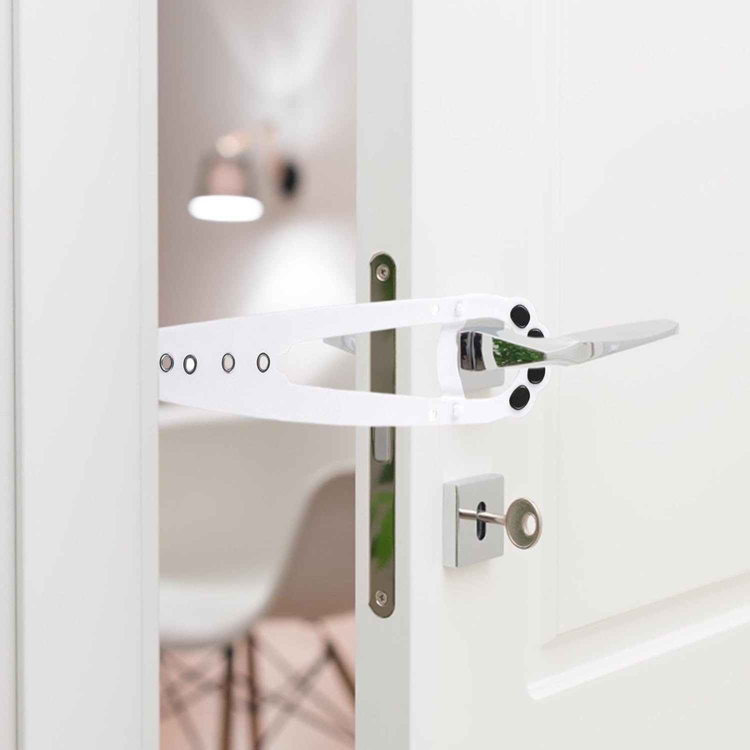 Idealny do pralni, łazienek, sypialni, spiżarni lub biur. Zapobiega również wchodzeniu niemowląt do niedozwolonych pomieszczeń oraz pomaga w utrzymaniu bezpieczeństwa i porządku w domu.